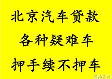 北京或(外地)汽车质押、抵押贷款。本人或直系亲属所购汽车均可抵押借款,可以押手续不押车,手续简便,一小时放款,这是所有贷款中最快的贷款,适用于急需用钱者。1、北京汽车抵押贷款,不限户口,不限车牌,只要您有车,就可做汽车抵押贷款。2、本人或直系亲属带车、带手续来公司直接办理。3、各种疑难车辆贷款、汽车手续不全车贷款、非本人车辆贷款、分期车抵押贷款、外地车辆抵押贷款、只要是车即可办理贷款!